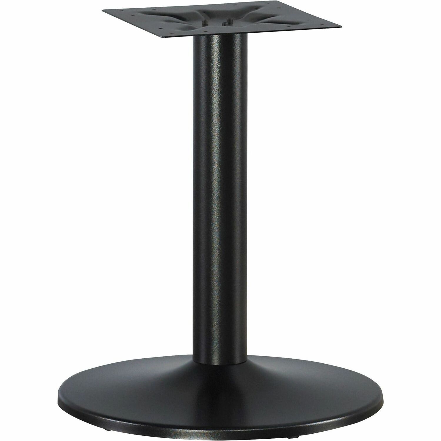 Steel base is designed for use with Lorell Essentials Series Wood Laminate Tabletops that measure 42" or 48" in diameter. Sturdy round base offers dependable support for your meeting needs and matches both the Mahogany and Cherry laminate tabletops. Tabletop attaches easily to the stem of the base with included hardware. Top and base are sold separately.